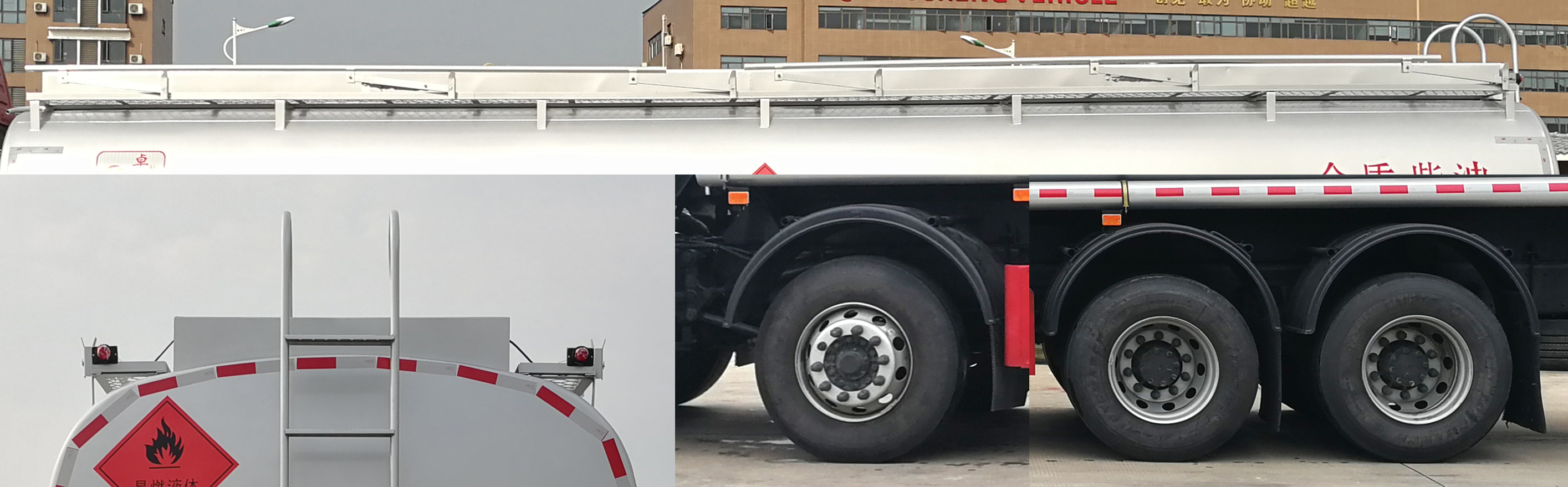 配置  該車為危險貨物運輸車,運送危險貨物車輛類型為:FL型,類項號:3。運輸介質:汽油,罐體有效容積27.5立方米,罐體外形尺寸(長×寬×高)(mm):8900×2300×1660。僅選用軸距(mm):1800+4575+1400。側、后防護材料均為Q235,螺栓連接,后防護截面尺寸(mm)80×140,下邊緣離地高460mm。隨底盤選裝駕駛室。僅選用排氣管前置、限速裝置(限速80km/h)、前輪盤式制動及子午線輪胎的底盤。轉向輪安裝輪胎爆胎應急防護裝置。后軸采用空氣懸架。安裝帶有衛星定位功能的行駛記錄儀。EBS**系統型號/生產廠家:EBS3/威伯科(上海)管理有限公司。發動機/油耗值(L/100km)對應關系為:MC07.31-60/38.0,MC07.34-60/38.0,MC09.35-60/38.2,MC09.38-60/38.2,MC09.35B-60/38.2,MC07.33-60/38.0,MC07H.33-60/37.44,MC07H.35-60/37.44,MC11.40-60/37.3,MC11.44-60/37.3,MC11.40-61/37.3,MC11.43-61/37.3,WP8.350E61/38.04。選裝ETC。罐體上部選裝上走道,**軸及驅動軸選裝弧形擋泥板。