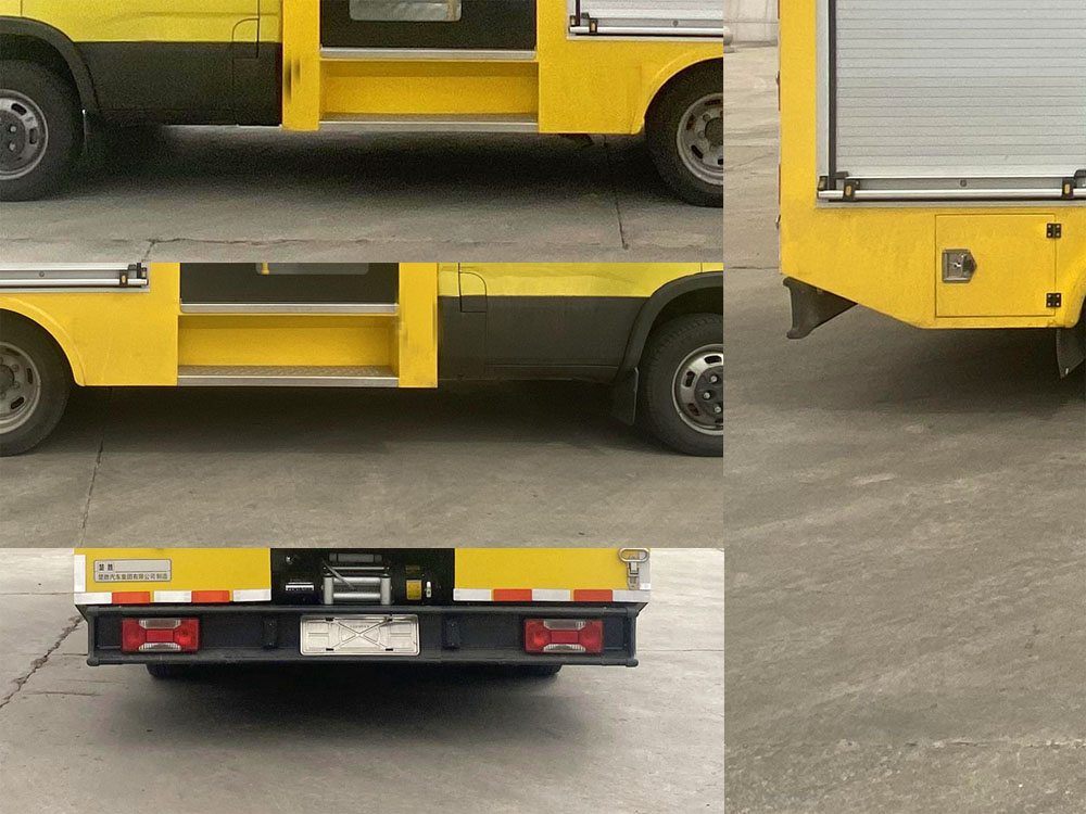 其它:該車主要用于應急搶險救援,主要專用裝置為電動絞盤、電焊機、充氣設備、升降照明裝置、設備柜.專用裝置設有固定支架,支架由螺栓固定在車身地板上.車廂頂部封閉,不可開啟.側防護由車身結構代替;后防護材料為Q235,焊接連接,截面尺寸(mm):220×90,下邊緣離地高405mm.ABS型號為0 265 242 ***,生產廠家為BOSCH.