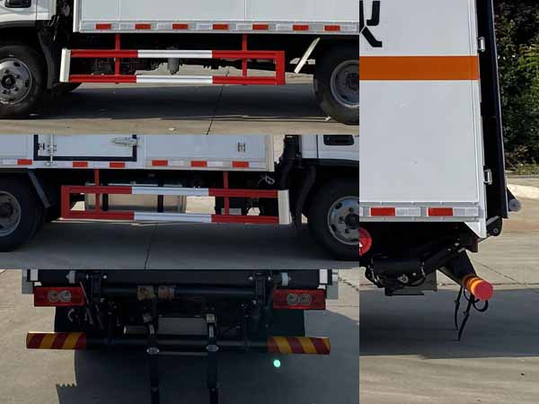 配置  ABS型號:ABS-E,ABS-VI·E;ABS生產企業:威伯科汽車**系統(**)有限公司,廣州瑞立科密汽車電子股份有限公司;安裝有限速裝置;限速裝置限速(km/h):80;安裝有具有衛星定位功能的行駛記錄儀;選裝描述:選裝后部無尾板,該車型可選裝ETC車載裝置.運輸具有**包裝的不可燃氣體,安裝2.2類危險品標識;發動機/油耗值(L/100km)對應關系為:F2.8NS6B131/10.85,Q28-130E60/11.02;所用材料材質、連接方式以及后部防護裝置的主要尺寸參數(斷面尺寸和離地高度):側、后防護材料均為Q235,螺栓連接;后防護截面尺寸100×100mm,下邊緣離地高450mm.選裝后部無尾板,后防護材料為Q235,焊接,截面尺寸100×50mm,下邊緣離地高450mm;尾板、上下坡道(或類似裝置)收起狀態的水平長度(mm):液壓升降尾板收起狀態水平長度為280mm,尾板質量為350kg;車廂頂部封閉且不可開啟;運輸**容器(瓶)包裝的貨物;危險貨物類項號:2.1,2.2;其他說明:該車為危險貨物運輸車.僅選用排氣管前置,限速裝置,前輪盤式制動及子午線輪胎的底盤.轉向輪安裝 輪胎爆胎應急防護裝置;廂體側面選裝開門型式及位置,選裝不帶側開門,選裝瓦楞板結構;廂體側面板選裝開百葉窗。
