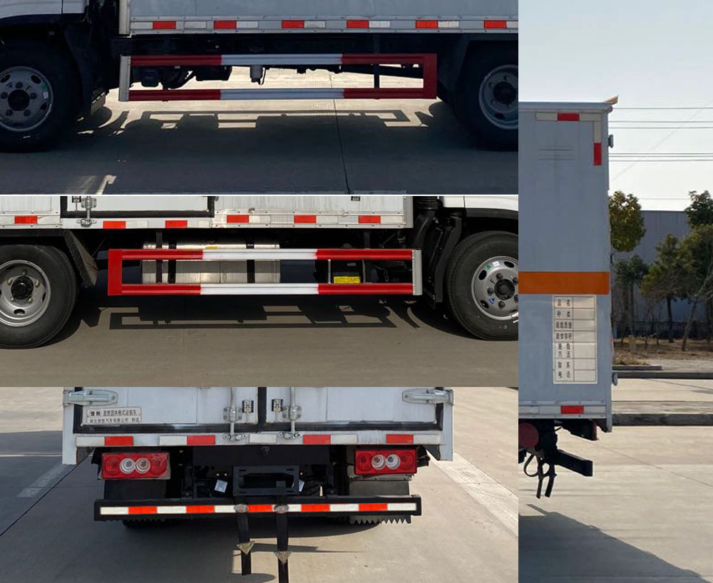 配置  該車為危險品運輸車,運輸具有**容器(瓶)包裝的物品,運送危險物品類項號:4.1,4.2,4.3。廂體頂部封閉,不可開啟。側后防護材料均為Q235,螺栓連接,后防護截面尺寸(mm)100×50,下邊緣離地高450mm。選裝后部尾板,選裝后部尾板時后防護材料為Q235,螺栓連接,截面尺寸(mm)φ100,下邊緣離地高450mm。廂體選裝側開門及位置或無側門、選裝后門雙拉桿,廂體選裝瓦楞板結構,選裝百葉窗。僅選用排氣管前置、限速裝置(限速80km/h)、前輪盤式制動及子午線輪胎的底盤;轉向輪裝備輪胎爆胎應急防護裝置。安裝帶有衛(wèi)星定位功能的行駛記錄儀。ABS型號/生產廠家:ABS-E/威伯科汽車**系統(tǒng)(**)有限公司,ABS-VI·E/廣州瑞立科密汽車電子股份有限公司,YF8/武漢元豐汽車電控系統(tǒng)有限公司。發(fā)動機/油耗值(L/100Km)對應關系為: F2.8NS6B131/11.47,Q28-130E60/11.02。尾板收起狀態(tài)水平長度為280mm,尾板質量為350kg。選裝ETC。