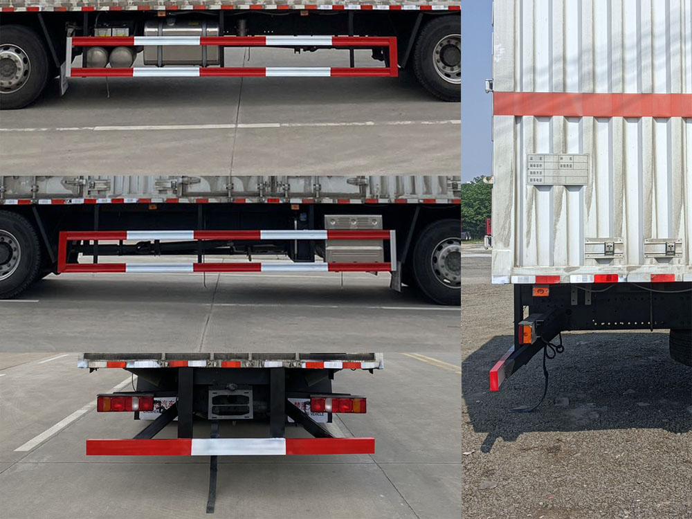 其它:1、該車為危險品運輸車.運輸具有獨立容器(瓶)包裝的易燃液體物品.運送危險物品類項號:3類.廂體頂部封閉不可開啟.2、側、后防護材料均為Q235,焊接;后防護截面尺寸(mm)120×50,下邊緣離地高490mm。廂體側面選裝開門型式及位置,選裝不帶側開門,選裝貨廂平面或瓦楞結構;廂體側面選裝開百葉窗,選裝后部樣式。3、僅選用1800+5600mm軸距,僅選用排氣管前置、限速裝置(限速80km/h)、前輪盤式制動及子午線輪胎的底盤,轉向輪安裝輪胎爆胎應急防護裝置,后軸采用空氣懸架,安裝帶有衛星定位功能的行駛記錄儀,隨底盤選裝駕駛室,選裝前部燈具,選裝ETC。EBS型號/廠家:EBS3/威伯科(上海)管理有限公司。發動機/油耗值(L/100km)對應關系為:MC07H.35-60/32.45,MC07.31-60/32.43,MC07.27-60/32.43,MC07.25-60/32.43,WP7H270E62/32.15,WP7H245E62/32.15,WP7H220E62/32.15,WP7H320E62/32.60,WP7H300E62/32.60。