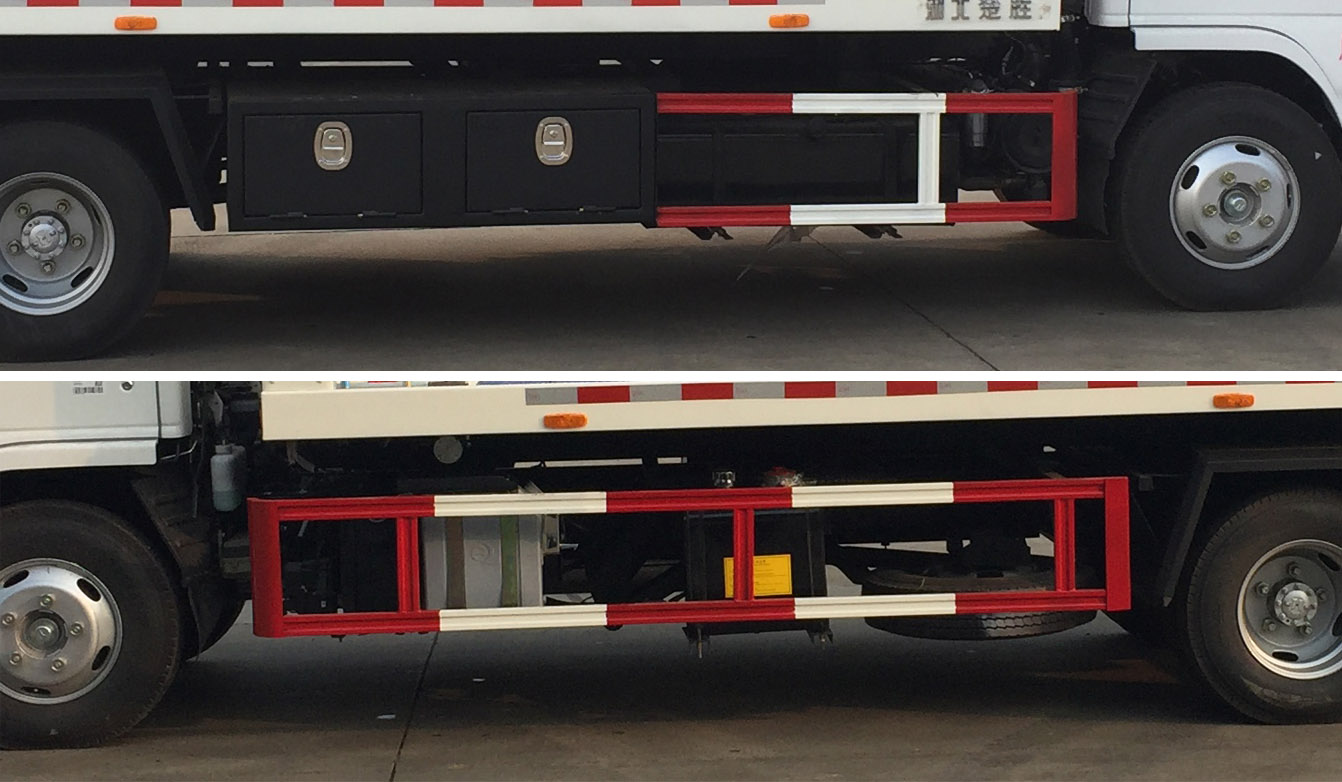 配置  1、該車主要用于道路車輛清障,主要專用裝置為托臂、平板、絞盤、鋼絲繩、油缸。整備質量與托舉質量對應關系:4850/2255kg,5150/1955kg。選裝尾部站板;選裝龍門架樣式。2、側防護材料為Q235,后防護由專用裝置代替,下邊緣離地高500mm。3、隨底盤選裝制動系統:裝液壓制動系統時,ABS及其**器型號/生產企業對應關系為:APG3550500A/浙江亞太機電股份有限公司,CM4YL/廣州瑞立科密汽車電子股份有限公司;裝氣壓制動系統時,ABS及其**器型號/生產企業對應關系為:CM4XL-4S/4M/廣州瑞立科密汽車電子股份有限公司。隨底盤選裝前部標牌“KVNNR/NNR/KV100”、選裝輪眉。隨底盤配置選裝底盤附件安裝位置。選裝備胎位置。