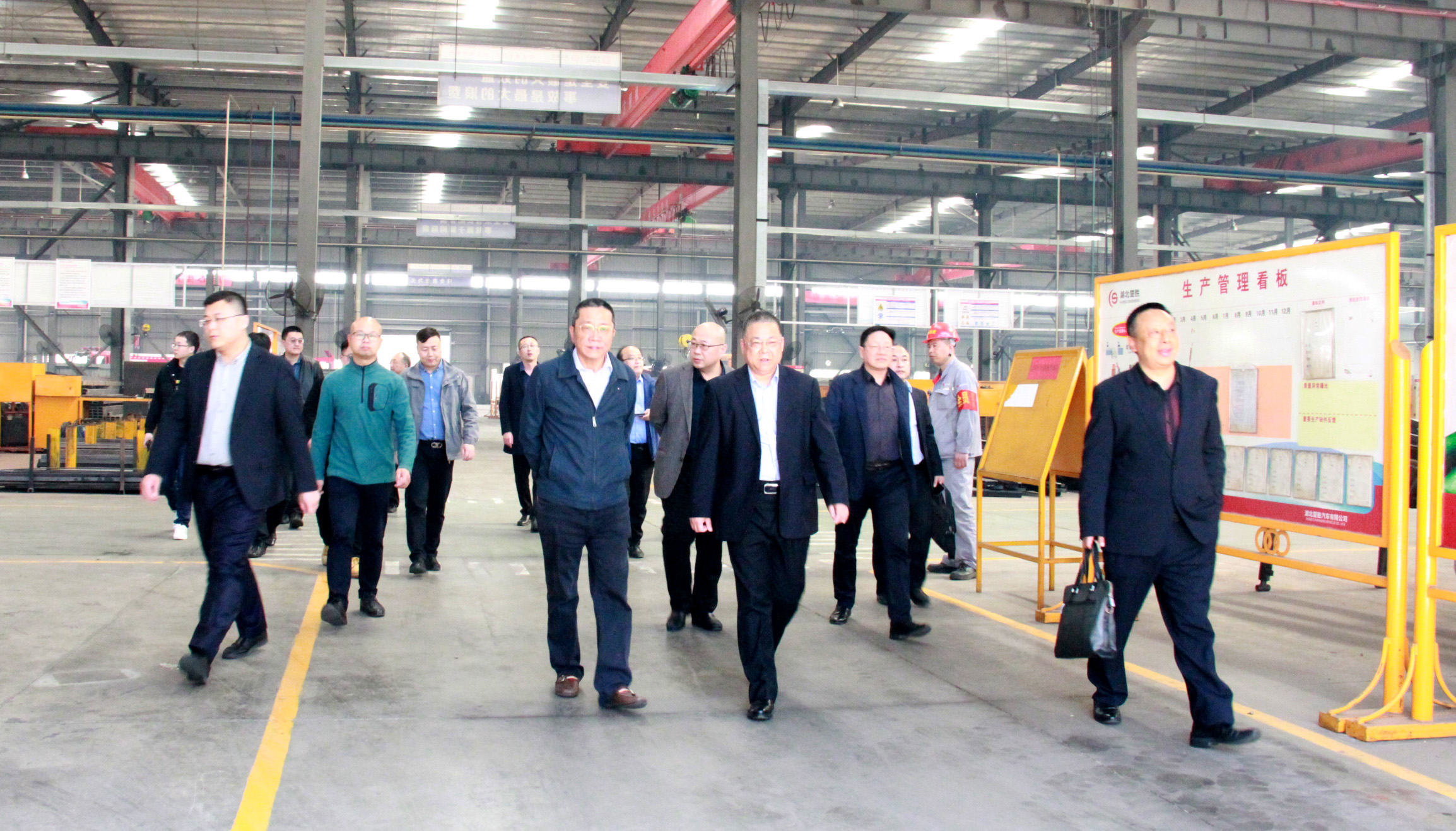 3月9日下午,中國(guó)重汽集團(tuán)總經(jīng)理、黨委副書記蔡?hào)|、產(chǎn)品策劃總監(jiān)、專用車部部長(zhǎng)王德春、副部長(zhǎng)隋磊等一行11人蒞臨楚勝汽車集團(tuán)參觀考察,公司總裁王小康、副董事長(zhǎng)傅冠生等班子成員陪同參觀、交流座談。