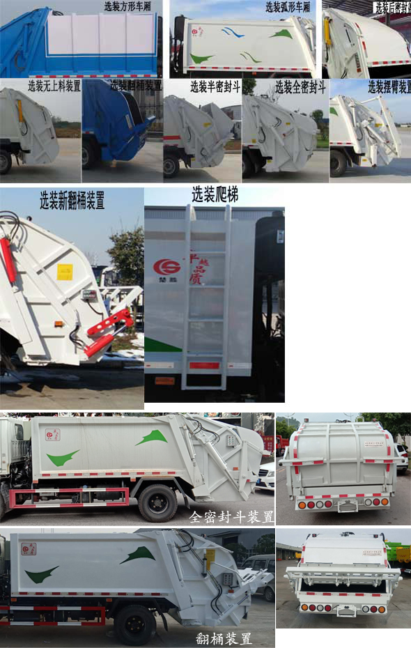 配置  1、該車(chē)主要專(zhuān)用裝置由箱體、壓縮系統(tǒng)組成,用于垃圾的收集與清運(yùn)。該車(chē)可選裝方形或弧形箱體,選裝全密封蓋裝置,選裝方形擋泥板,選裝箱體前部爬梯,選裝后部工作裝置。選裝工作裝置時(shí),外形長(zhǎng)(mm)/后伸(mm)/整備質(zhì)量(kg)對(duì)應(yīng)關(guān)系:①無(wú)上料裝置: 6525/-/5530;②擺臂裝置: 6685/160/5850;③全密封斗裝置:6725/200/5850;④翻桶裝置,半密封斗裝置:6925/400/5850。2、側(cè)防護(hù)采用冷彎型鋼/Q235,螺栓連接;后防護(hù)由專(zhuān)用裝置替代,下邊緣離地高500mm。3、ABS系統(tǒng)型號(hào):VIE ABS-II,ABS系統(tǒng)生產(chǎn)廠家:浙江萬(wàn)安科技股份有限公司。發(fā)動(dòng)機(jī)JX4D30D6H的油耗值為13.9 L/100km。隨底盤(pán)選裝左右車(chē)門(mén)上方黑色貼膜可選擇取消。選裝輪輞外觀。選裝前臉、前部燈具。該車(chē)型可選裝ETC車(chē)載裝置.