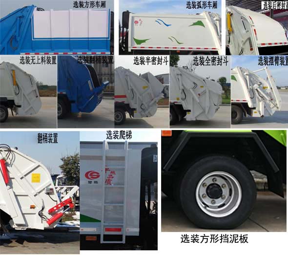 配置  1、該車主要用于垃圾收集和清運,主要專用裝置為廂體和壓縮系統。該車可選裝方形或弧形車廂;選裝后密封蓋裝置;選裝工作裝置時外形尺寸長/后伸(mm)對應關系:①無上料裝置6500/0,②擺臂裝置6660/160,③全密封斗裝置6700/200,④半密封斗裝置、翻桶裝置6900/400。選裝方形擋泥板。2、側防護采用Q235,螺栓連接。后防護由專用裝置替代,離地高500mm。3、ABS生產廠家:浙江萬安科技股份有限公司/VIE ABS-II。發動機/油耗值(L/100km)對應關系為:WP2.3NQ130E61/15.32,H20-120E60/12.72。該車型可選裝ETC車載裝置.