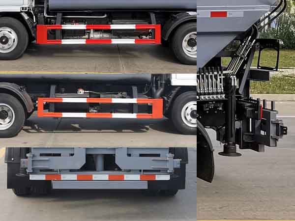 配置  1、卸料方式為后卸式。該車主要專用裝置為垃圾箱、翻轉上料裝置、舉升卸料裝置、填壓機構、液壓系統組成,主要用于垃圾收集清運。僅采用軸距:3308mm。2、側防護材料采用Q235,螺栓連接;后防護由專用裝置代替,下邊緣離地高:320mm。3、隨底盤選裝前面罩,前保險杠,前組合燈具,選裝左右油箱位置,選裝一排半駕駛室。ABS型號/廠家:ABS/ASR-12V-4S/4M/襄陽東風隆誠機械有限責任公司。發動機與油耗值(L/100km)的對應關系為:D20TCIF1/11.4,YCY24140-60/11.4,CA4DB1-11E6/11.4,ZD30D16-6N/11.4,CY4BK461/11.4,CY4BK161/11.4,Q23-115E60/11.4,H20-120E60/11.4,CA4DB1-13E6/11.4。